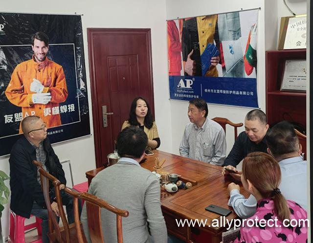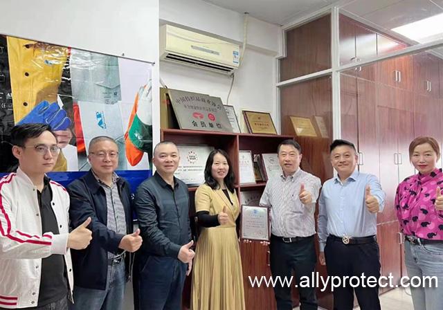 2022年3月4日,廣東省安全生產協會勞動防護分會會長李聲譽、秘書長祝平、副秘書長杜玉霜一行到達副會長單位——梧州市友盟焊接防護用品有限公司,受到了友盟總監(jiān)鄒暖春及公司各區(qū)域負責人的熱情接待。